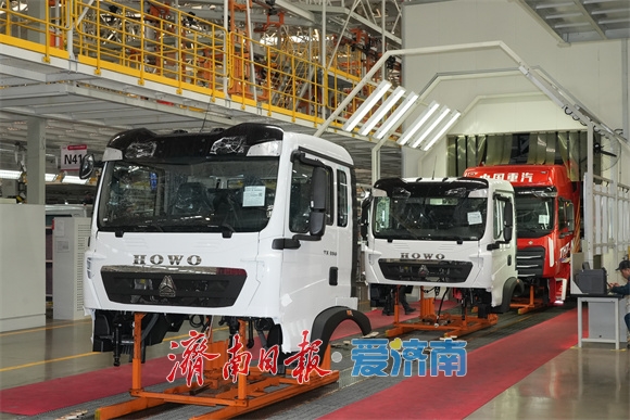 “现正在出产线上的产物中,国际订单占到70%。总卸车间双线分钟就有两辆车正在这里同时下线。”中国沉汽济南卡车制制公司副总司理吕涛说。