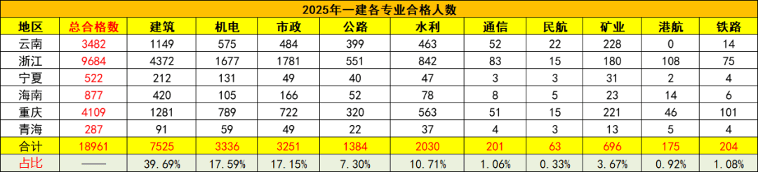 各地2025年一级建制师测验及格人数连续发布,按照能统计到的专业及格人数,云南、浙江、、海南、沉庆、青海等2025年一建测验各专业及格人数统计如下。