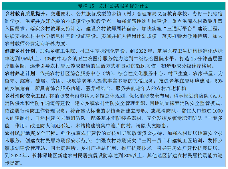 环绕农人群众最关怀、最间接、最现实的好处问题,补齐农村平易近生短板,持续保障和改善农村平易近生,让农人群众的获得感幸福感平安感愈加充分、更有保障、更可持续。继续把根本设备扶植沉点放正在农村,持续加大投入力度,统筹推进农村公、水利、供水、供气、电网、物流、通信等提挡升级,勤奋实现村村通动力电、组组通软化、户户通、人人饮上平安水。137。加强交通设备提质。以示范县为载体全面推进“四好农村”扶植,实现25户以及100人以上的天然村通水泥(沥青)。有序推进实施旅逛、贫苦县资本财产、国有林场林区社会公共办事属性道扶植,农村公四、五类危桥,实施农村公渡改桥。加大农村公养护,完成县乡道及通行客车线和接送学生车辆集中的急弯陡坡、临水临崖等沉点段现患管理,提高农村全保障程度。138。推进城乡客运办事一体化。鞭策城市公共交通线向城市周边延长,有序实施农村客车线公交化,激励成长镇村公交。继续实施“村村通客车”工程,完美农村客运收集系统。加大村已通客车补助力度,保障农村客运“开得通、留得住、管得好”。 到2022年,具备前提的村通客车比例达到100%。139。加速完美农村物流收集。建立城乡下、村落间对接有序、平安快速、高效率、低成本的县、乡、村物流收集系统。完美农村集贸市场扶植,实施“快递下乡”,激励大型电商平台企业开展农村电商办事,加大农村物流公共办事核心和村级网点扶植,健全农村电商办事系统。切实处理农产物进城“最后一公里”和工业品下乡“最初一公里”问题。140。完美水利根本设备收集。有序推进列入国度规划严沉水利工程扶植,新建一批灌区,加速大中型灌区续建配套节水。全面完成小型病险水库除险加固,加速中小河道管理和沉点涝区排涝能力扶植。统筹推进山害防治、农村下层防汛预告预警及群测群防系统、中小型水源工程和抗旱应急能力扶植。正在粮食出产焦点功能区、大型水库汇水区、干旱易发区和冰雹多发区扶植人工影响气候尺度化功课坐点。加强田间渠系配套、“五小水利”扶植,鞭策小型农田水利设备达标提质。加强消防水源扶植。到2022年,完陈规划内23条流域面积3000平方公里以上中小河道及流域面积200—3000平方公里中小河道管理;完成20处大型灌区及40处中型灌区续建配套节水。农村灌溉水无效操纵系数达到0。55。141。巩固提拔农村饮水平安。开展饮用水水源规范化扶植,依法清理饮用水水源区内违法建建和排污口。健全农村饮水平安工程扶植和运转管护系统,推进农村供水管能化。进一步提拔农村集中供水率、自来水普及率、供水率、水质达标率。142。升级农村电网。顺应农业出产和农村消费需求,凸起沉点范畴和亏弱环节,实施新一轮农村电网升级工程,加速城乡电力办事均等化历程,推进农村能源消费升级,全面提拔农村供电能力,提拔农村电气化程度,强化农村平安用电保障。143。推进洁净能源开辟操纵。开展太阳能、风能、地热能等资本阐发评估。加快新能源开辟操纵,推广太阳能热水器、太阳能灯和小型光伏发电。因地制宜开展风能、地热能、小水电等开辟操纵。推进农做物秸秆等能源化操纵及沼气工程集中供气、发电上彀等分析操纵。激励利用高效节煤省柴炉灶。有序推进天然气进农村。144。加速通信收集升级。深化电信遍及办事,鞭策天然村G收集结构和商用历程,根基实现农村挪动宽带收集生齿全笼盖。开辟顺应“三农”特点的消息手艺和产物,鞭策“互联网+”拓展延长。到2022年,有前提县市区农村家庭根基具备100兆以上接入能力。145。夯实农村消息化根本。成长农村电子政务,激励开辟村落政务村务手机APP软件和挪动终端。推广近程医疗、近程教育。加强贫苦县干部群众收集技术培训。扶植“消息进村入户整省推进示范工程”,实现村级消息办事坐全笼盖。建立农业农村消息化示范和互联色小镇。将村落消息化根本设备取收集平安设备同步规划、同步扶植、同步运营。