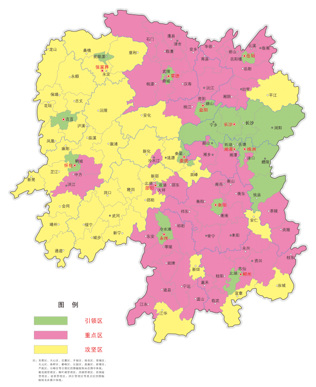 引领区:次要指城镇化率正在80%以上或农村居平易近人均可安排收入正在25000元摆布的县市区,市州内如没有达到此尺度的县市区则各列入一个城镇化率最高的区市,共31个。沉点区:领区之外的非贫苦县市区(含2016、2017年已脱贫摘帽的14个县市区),共62个。攻坚区:指纳入集中连片特困地域、国度和省扶贫开辟、比照享受省级扶贫政策待遇,尚未脱贫摘帽的县市区,共37个。攻坚区内各县市区城镇化率遍及正在45%以下或农村居平易近人均可安排收入正在10000元以下。