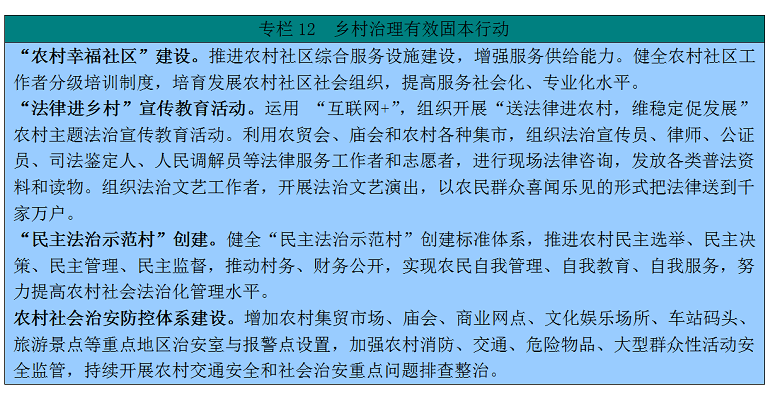 夯实村落管理根本,自治、、德治相连系,成立健全党委带领、担任、社会协同、参取、保障的现代村落社会管理体系体例,鞭策村落组织复兴,打制充满活力、协调有序的善治村落。结实推进农村下层党组织扶植,凸起功能,提拔组织力,把农村下层党组织扶植成为宣传党的从意、贯彻党的决定、带领下层管理、连合带动群众、鞭策成长的顽强和役碉堡。113。完美组织系统。调整和完美农村下层党组织设置,加大正在农人专业合做社、农业企业、农业社会化办事组织中成立党组织力度,依托天然村、村平易近小组成立党支部或党小组,实现党的组织和工做全笼盖。推进村党组织担任村平易近委员会从任和村集体经济组织、合做组织担任人,奉行村“两委”班子交叉任职;激励非村平易近委员会的村党组织班子或担任村务监视委员会从任;提高村平易近委员会中比例。114。选优配强村“两委”班子。加大从村致富妙手、外出务工经商人员、大学结业生、复员中培育选拔农村带头人力度;集中调整优化村党组织步队,实行县级存案办理;健全从优良村党组织当选拔乡镇带领干部、考录乡镇公事员、聘请乡镇事业编制人员机制。沉视吸引高校结业生、进城务工农村人员、机关企事业单元优良干部到村任职。加强教育培训,严酷监视办理,持续加大后备干部培育力度,确保每个村配备3—5名村级后备干部。115。整理薄弱虚弱涣散村党组织。成立健全经常性发觉和整理薄弱虚弱涣散村党组织工做机制,采纳带领挂点、部分帮扶、选派“第一”等体例,持续抓好整理,补齐工做短板,深切开展党支部“五化”扶植,鞭策农村党支部扶植质量全体提拔。强化村党组织的带领焦点感化,严沉事项、严沉问题、沉点工做按照“四议两公开”法式施行,防止村级党组织弱化、虚化、边缘化。116。加强教育办理。推进“两学一做”进修教育常态化制。成立农村按期培训轨制,依托干部现代近程教育消息化平台和新时代农人讲习所等载体,开展抱负、政策律例、农村适用手艺、致富技术等培训,教育指导泛博农村盲目用习新时代中国特色社会从义思惟武拆思维,提拔带头致富、率领群众配合致富的本事。普遍开展意愿办事。加强激励关怀帮扶,按期走访慰问农村老、糊口坚苦,帮帮处理现实坚苦。加强农村流动办理。117。优化农村步队布局。以村组干部、返乡结业生、复员、外出务工经商人员、致富妙手、农人专业合做组织、农村专业手艺协会会员、大学生村官和青年农人为沉点,加大成长力度,不竭优化农村步队春秋、文化、能力等布局。沉视把致富妙手培育成,把培育成致富妙手。稳妥有序开展不及格组织措置工做。118。庄重组织糊口。庄重党的组织糊口,严酷落实“三会一课”、组织糊口会、交心谈话、评断等轨制,全面奉行“支部从题党日”。推进党务公开,通顺参取事务、监视党的组织和干部、向上级党组织提交看法和的渠道。指导泛博农村通过开展许诺践诺、设岗定责、结对帮扶等勾当阐扬前锋榜样感化。119。加强党风廉政扶植。奉行村级小微清单轨制,加大下层小微惩处力度。持续开展“雁过拔毛式”问题专项整治,峻厉整治套取扶贫资金和惠农补助、侵犯集体资产、涉及地盘征收等范畴损害群众好处问题。党的带领取村平易近自治相同一,完美“四位一体”村级管理模式。加强农村下层群众性自治组织扶植,鞭策农村居平易近办理、教育、办事。120。健全村级自治轨制。完美农村选举、决策、协商、办理、监视等轨制,健全村平易近会议、村平易近代表会议、村平易近议事会、村平易近理事会、村平易近监事会等,构成多条理下层协商款式。121。推进阳光村务扶植。成立健全村务监视委员会,奉行村级事务阳光工程。深化和拓展“亮栏”步履,鞭策线上线下村务公开,实现村务公开常态化。立异村平易近议事形式,完美议事决策从体和法式,落实群众知情权和决策权。加强村务档案归档、保管和利用办理。122。付与村规平易近约现价格值。指导泛博农村进一步完美提拔村规平易近约,充实阐扬其处理农村矛盾胶葛的奇特功能,公序良俗,促使愈加契治和现代管理。123。加强恪守村规平易近约认识。成立完美村规平易近约自治章程,建立取指导、激励取束缚、自律取他律相连系的长效机制。把恪守村规平易近约做为扶植斑斓家庭、文明家庭、五星家庭的主要内容,切实加强村平易近盲目恪守认识。124。建立农村下层办事平台。激励制定村(农村社区)根基公共办事清单,推进办事规范化尺度化,按每百户不低于30平方米尺度,打制“一门式打点”“一坐式办事”的村(农村社区)分析办事平台,逐渐实现全笼盖。遍及扶植网上办事坐点,提拔互联网等现代消息手艺正在农村管理中的感化。125。提高农村下层办事能力。鼎力培育农村运营性、公益性、互帮性办事从体,供给多元办事。吸纳非户籍生齿、社会组织、驻村单元等参取村(农村社区)公共办事。外出务工人员正在户籍所正在地权益。指导农人用法守法,阐扬法令正在保障农益、规范市场运转、管理生态、化解农村社会矛盾等方面的感化,完美治安防控系统,扶植村落和安然村落。126。营制空气。指导干部群众卑法守法用法,依法表达、处理胶葛、权益。深切开展扶植示范乡镇(街道)、示范村(社区)建立勾当。